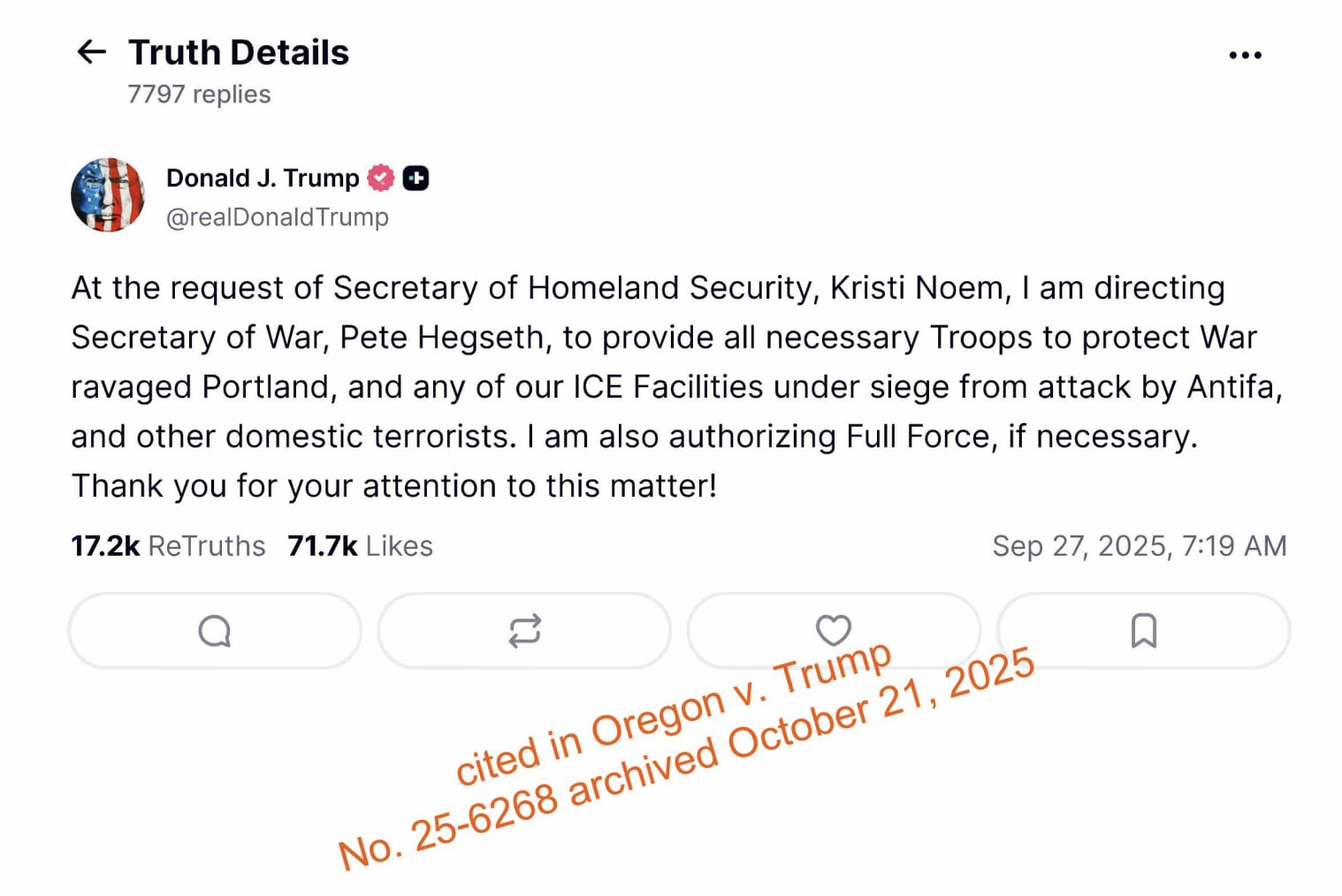 As it turns out, Trump’s lackeys in the DOJ have also lied. A lot. In fact, while the Ninth Circuit was considering the Oregon federalization appeal, the DOJ admitted that one of its central claims in support of the emergency declaration was grossly inaccurate.