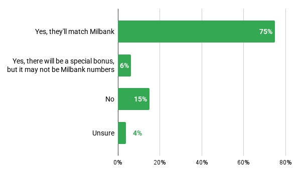 Do you think your firm will use the year-end bonus announcement to match the Milbank summer bonus or offer any other special bonuses?