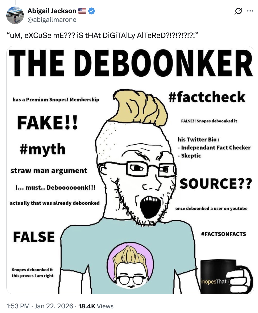 Attorney General Bondi and DHS Secretary trumpeted the arrests of Nekima Levy Armstrong, Chantyll Allen, and William Kelly on social media, blasting out their pictures with the arresting officers’ faces blurred. But that wasn’t cruel enough to satisfy the edgelord regime. The White House actually altered Armstrong’s picture to make it appear that she was weeping in terror, not strong and defiant. When reporters noted the forgery, White House press “professionals” snarked that “the memes will continue.”