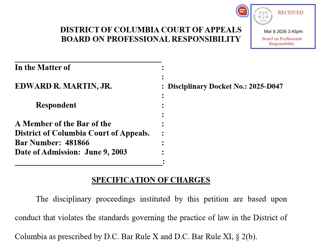 #5 “Ed Martin Faces Disciplinary Proceedings Over Actions as D.C. U.S. Attorney.” From The Washington Post: “The senior Justice Department official faces disciplinary proceedings over a letter he sent to Georgetown University’s law school about its DEI practices.” Read more here (gift link).