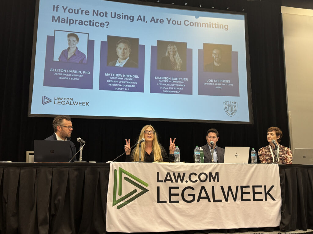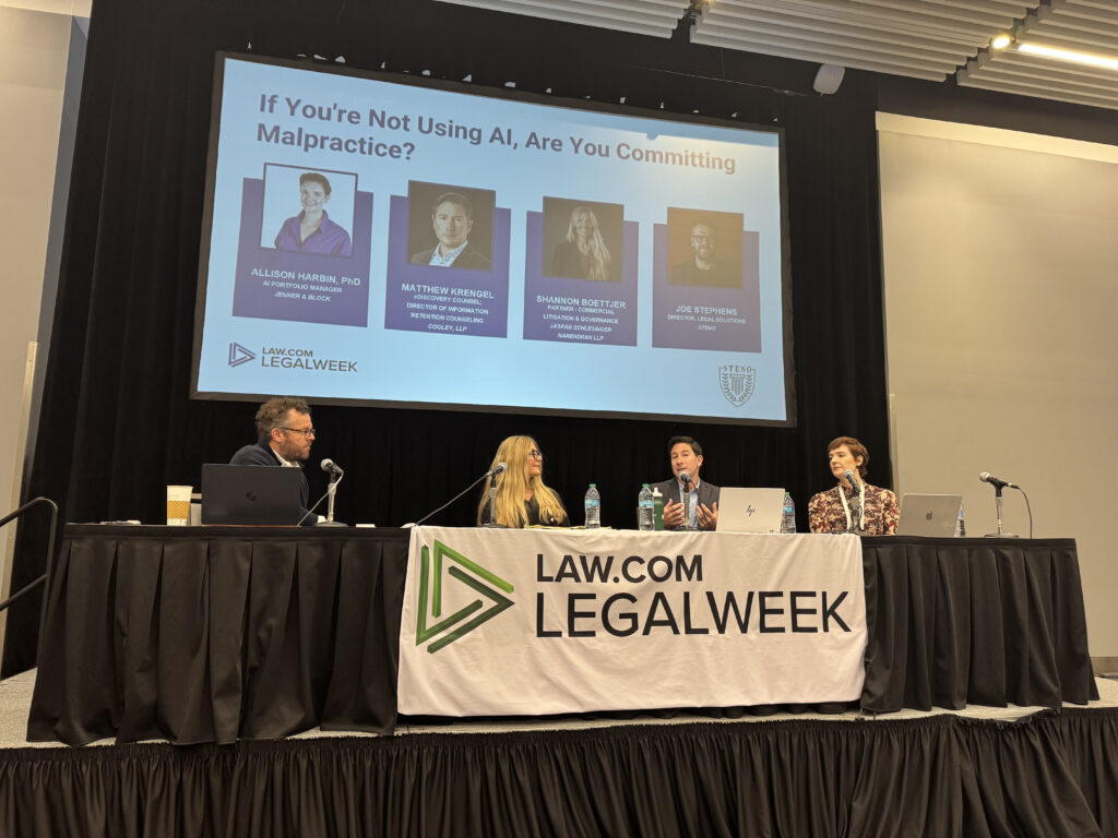Sponsored by Steno and led by Joe Stephens, the company’s legal solutions director, the panel drew inspiration from recent statements by Manhattan federal judge Jesse Furman, who suggested that failing to use AI could create its own legal risks, like fee disputes.